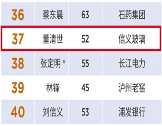 信義玻璃董清世總裁入選福布斯2018中國上市公司50位最佳CEO榜